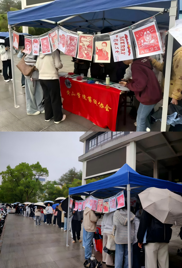 本次活动所获全部收益将定向捐赠给有需要的群体,用实际行动践行公益初心。剪纸协会与青鸟爱心协会以“剪纸”为桥梁,以“公益”为纽带,既为剪纸艺术搭建了展示与传播的平台,让更多人感受非遗文化的独特魅力,也通过义卖形式传递了校园温情,彰显了黄山学院学子的责任与担当。