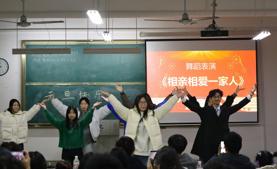 12月28日晚上,化学化工学院25功能材料班在5106教室举办以“欢度新春,金马贺岁”为主题的元旦晚会。本次晚会由辅导员田子豪牵头组织,团委老师陈伟龙、教研室主任黄飞、班主任高超与王瑞老师等受邀出席,25功能材料班全体同学齐聚一堂,其他年级学生也到场助力,晚会由张小颖、张含珺主持。